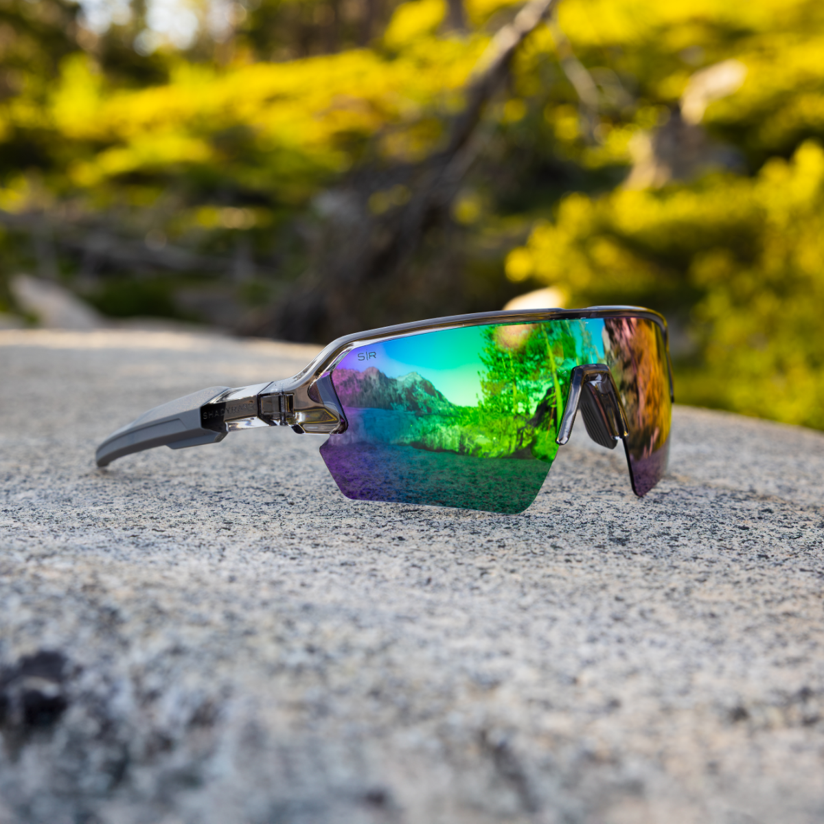 Built for motion, this semi-rimless sport frame provides panoramic coverage, lightweight comfort, and a no-slip rubber grip that stays in place. Translucent smoke grey TR-90 frame designed for a flexible lightweight fit and extreme durability. Semi-Rimless design for an unobstructed downward view. Premium Polarized gre