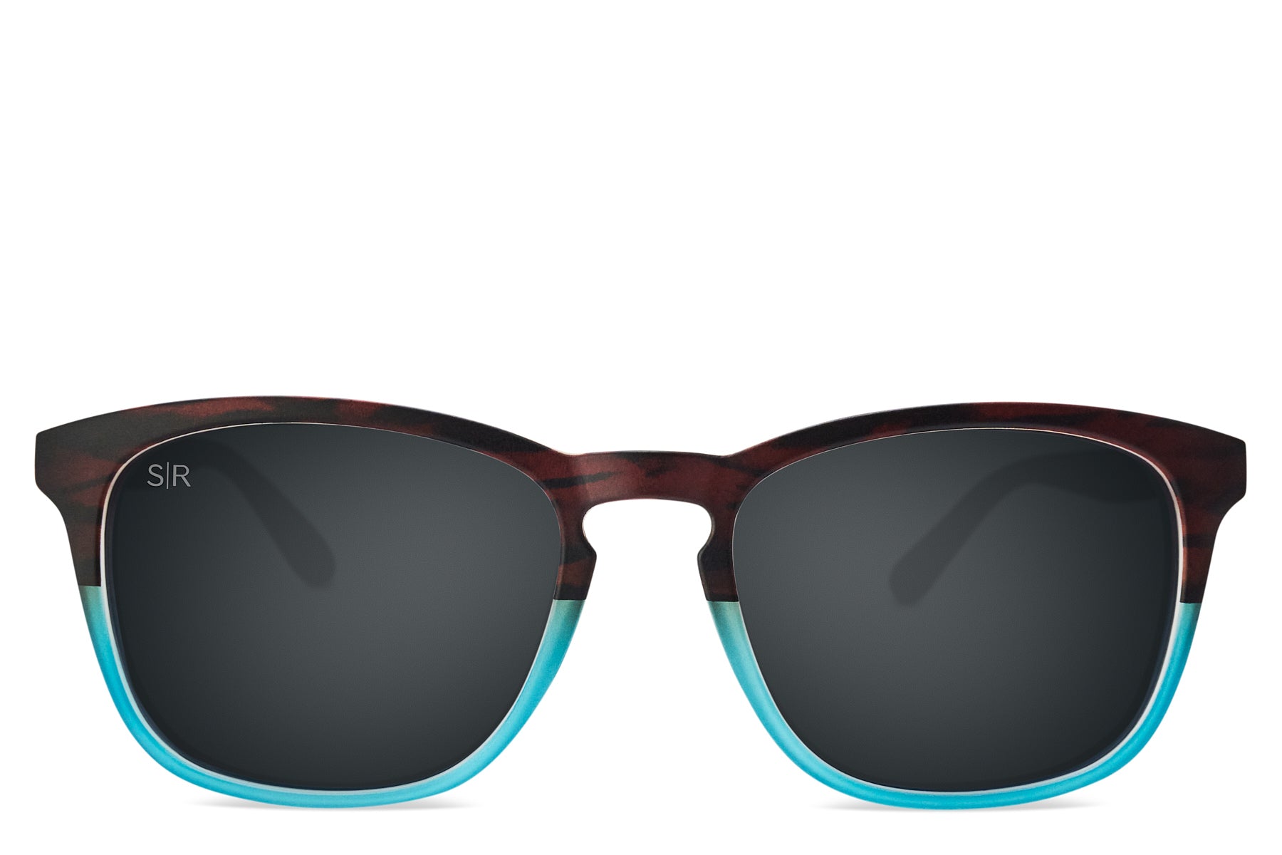 Built for everyday exploration. Cypress combines vintage appeal and nature inspired elements. Built for small to average fit. Two-tone frame with brown wood finish and light blue rims Polarized, black non-mirrored lenses with grey tint: 100% UV protection / shatter-resistant / salt water resistant VLT 14% Includes Micr