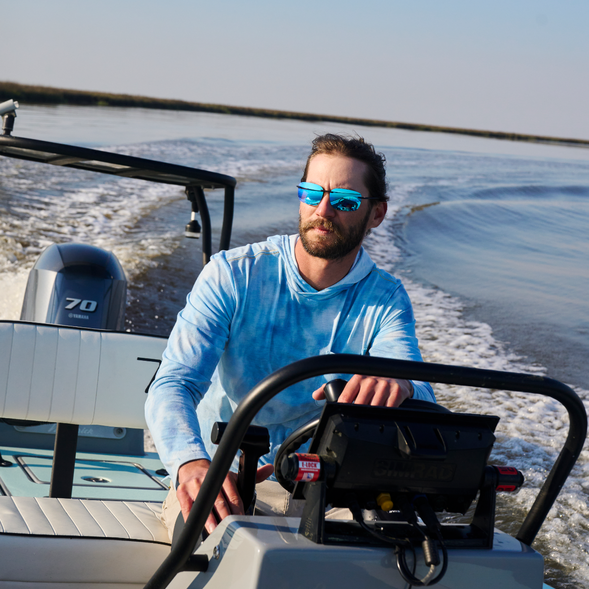 Lightweight comfort and iconic style, a versatile rimless design crafted for your active lifestyle. Matte black TR-90 frame designed for a flexible lightweight fit. Rimless design for an unobstructed view. Premium Polarized ice blue mirrored Lenses with amber tint: 100% UV protection / anti-scratch coating / hydrophobi
