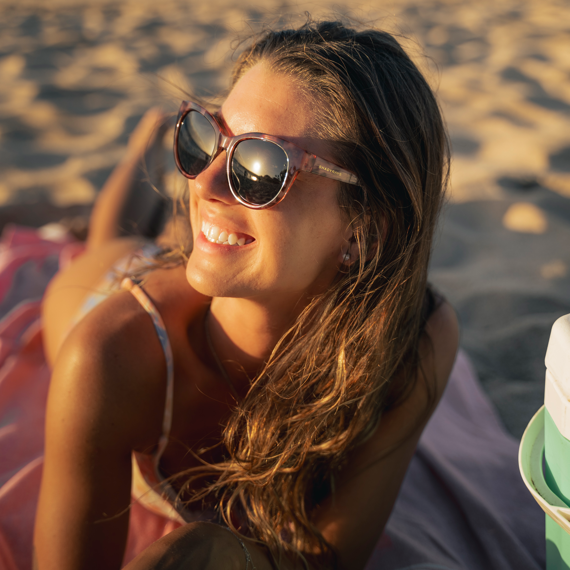 Bold cat-eye frames in vibrant hues for a fashionable look and all-day comfort A lightweight, gloss pink tortoise frame. Durable TR 90 design, perfect for everyday wear. Frustration-free pin hinge to keep hair from getting snagged. Polarized black non-mirrored lens with grey tint, and shatterproof, anti-scratch lenses