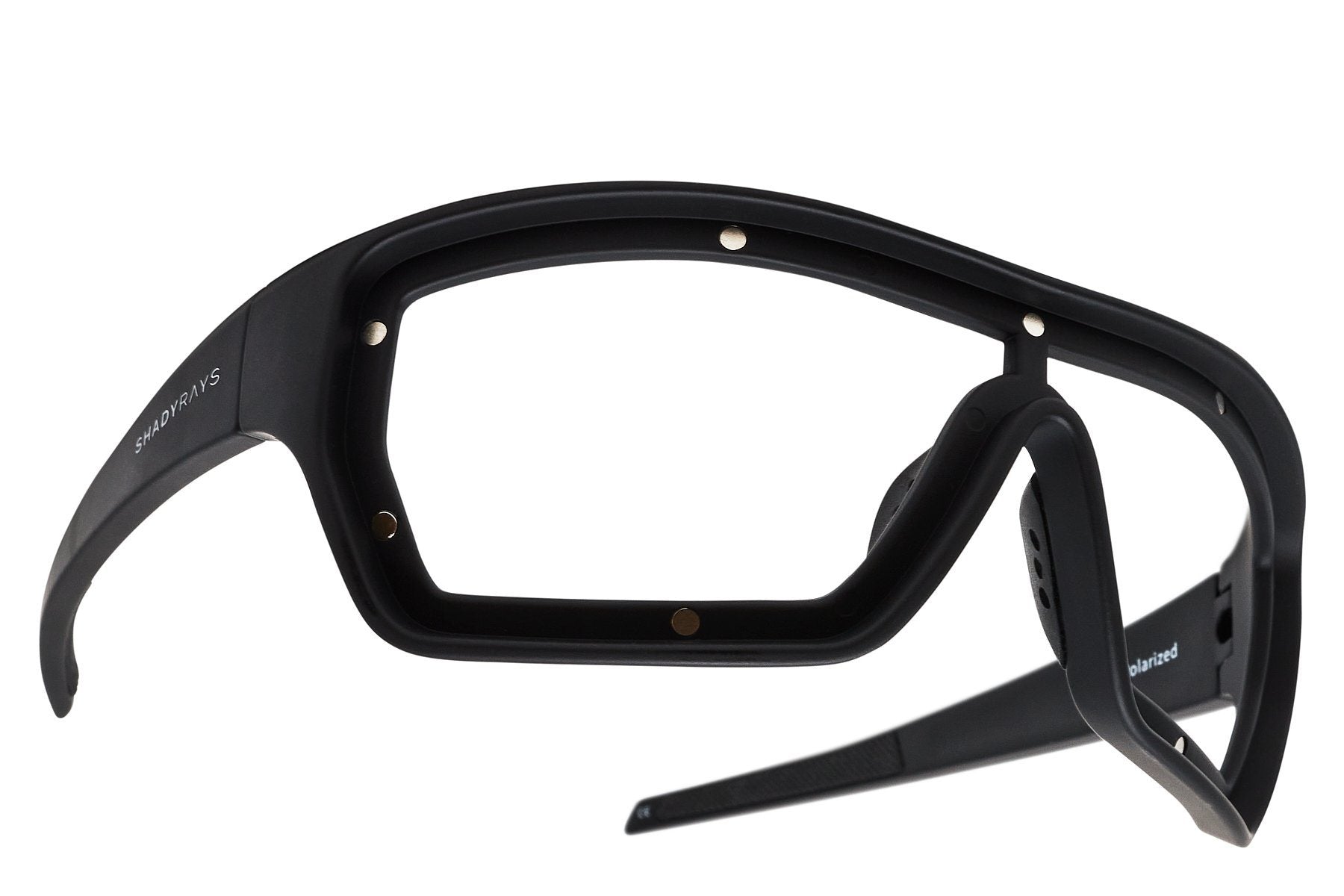 Patented Magnetic Interchangeable Sunglasses Magnetic Quick Swap Lenses built for all conditions High Visibility Polarization for optimum clarity Bold Shield Design for full coverage Features snap hinges, no-slip grip, comfort padded nose pieces, and metal inset Shady Rays logo Includes React Hard Case + Microfiber Cl