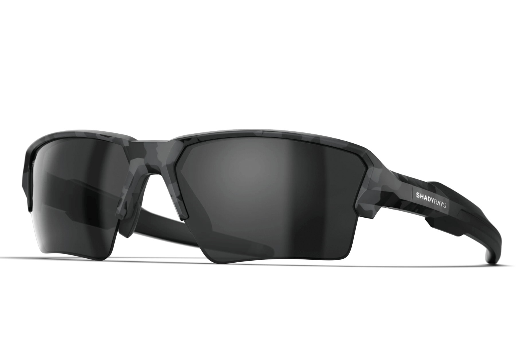 Made for movement, this rimless sport frame is designed for performance and built from ultra-durable lightweight materials. Featuring dual injected rubber accents for a no-slip fit and all-day comfort. Matte Black Camo TR-90 frame designed for a flexible lightweight fit and extreme durability. Rimless bottom for an uno