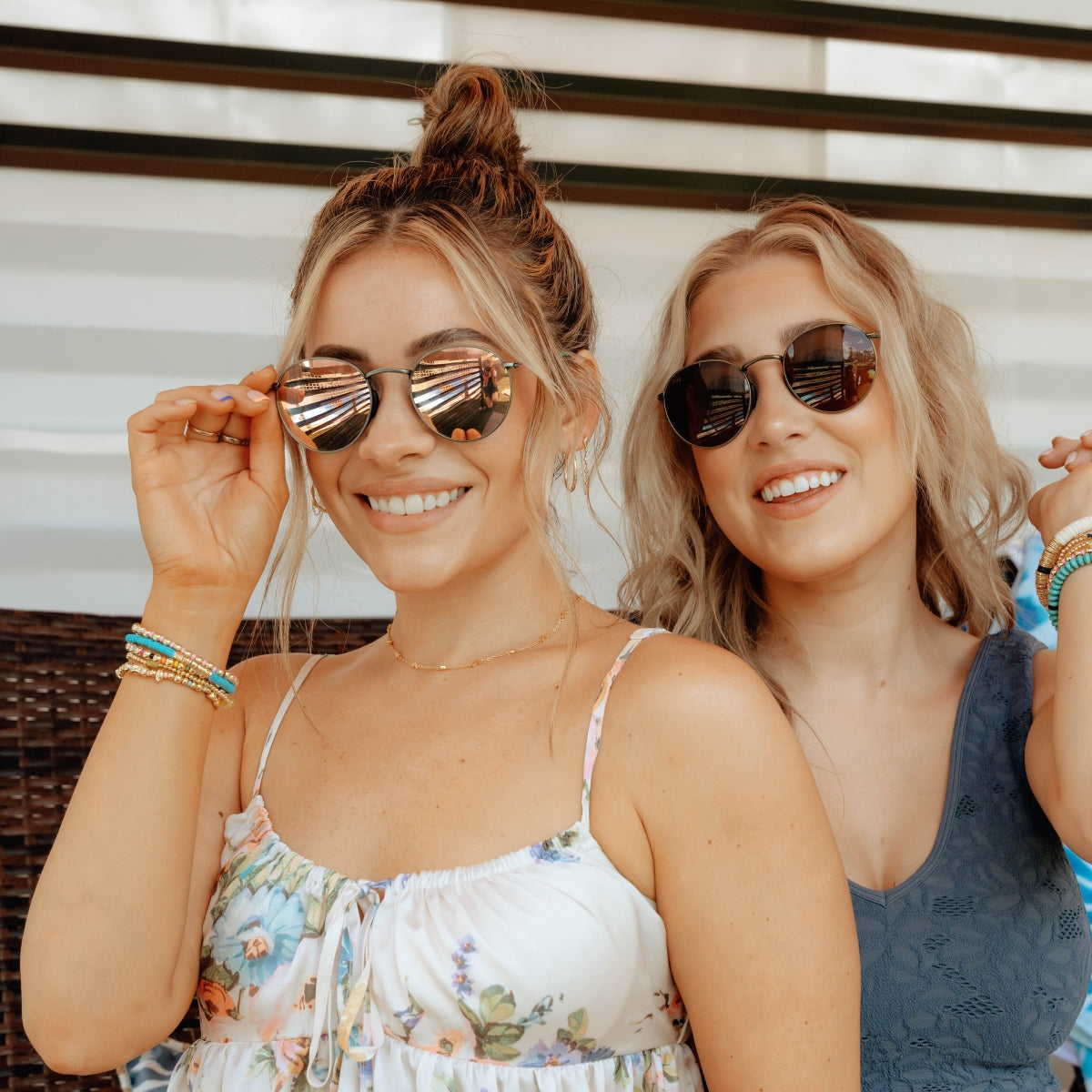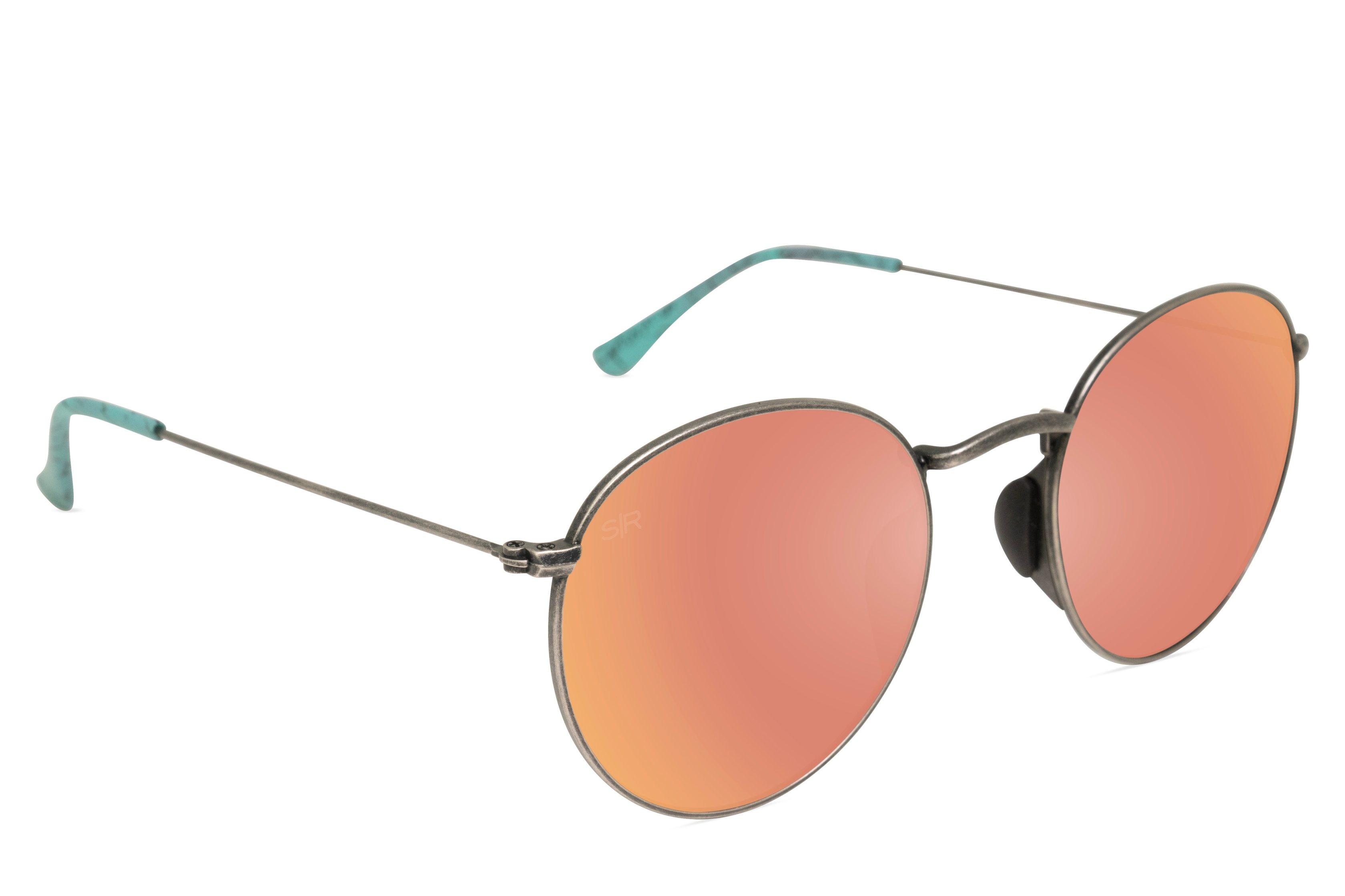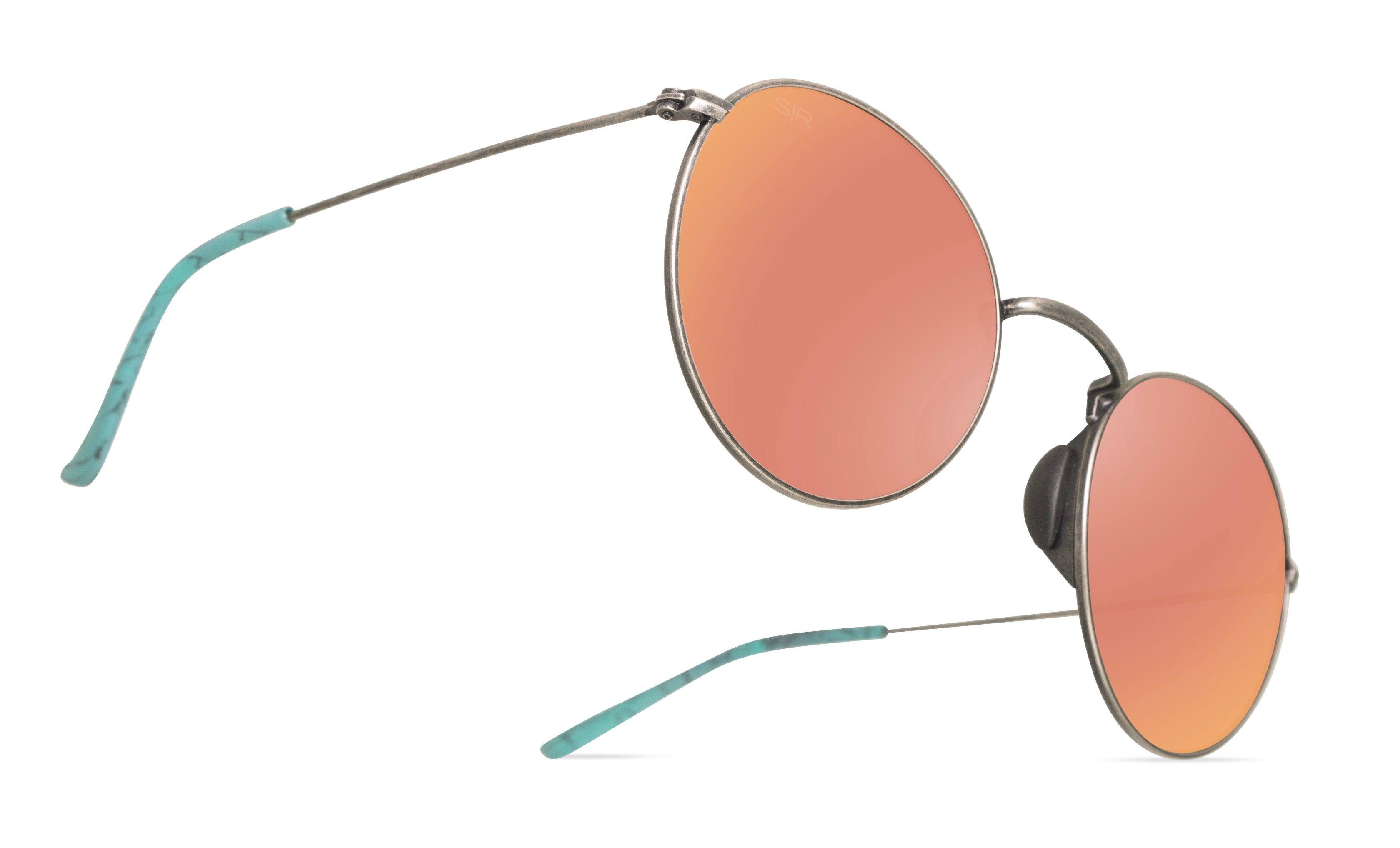 In collaboration with country music stars Maddie & Tae, Tangle Free Aston frames are featured in an antique finish with custom turquoise temples to match the duo’s favorite jewelry Antique Silver Metal frame with vibrant turquoise temple tips Polarized Amber lenses with Rose Gold mirror and 100% UV protection – sha