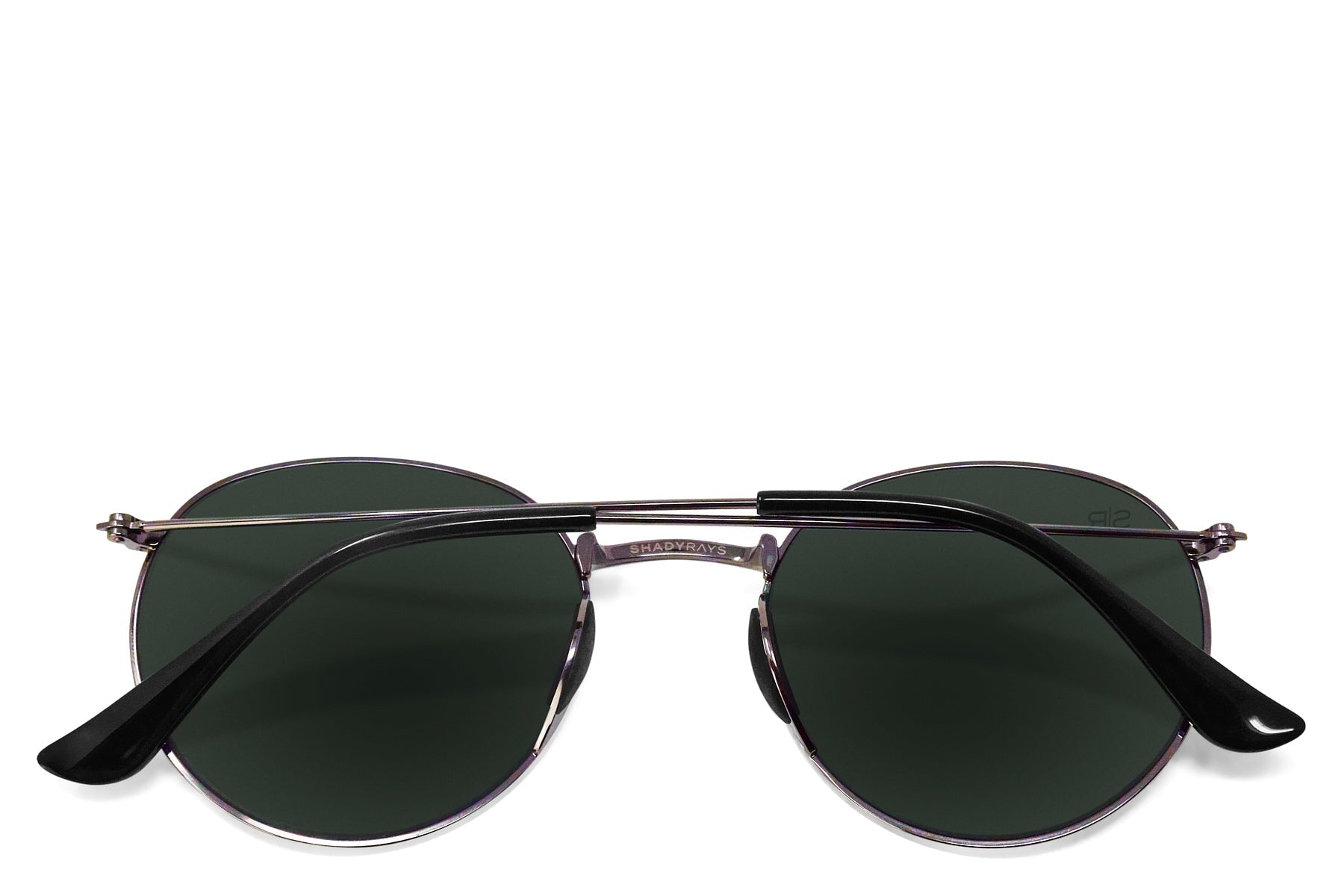 A classic round wire-frame design, upgraded with patent-pending comfortable nose pieces that won’t get caught in your hair.  Gloss Gunmetal Silver Metal frame with flex-fit arms Polarized Green non-mirrored TAC Lenses with green tint and 100% UV protection – shatter-resistant / scratch-resistant / hydrophobic coating 1