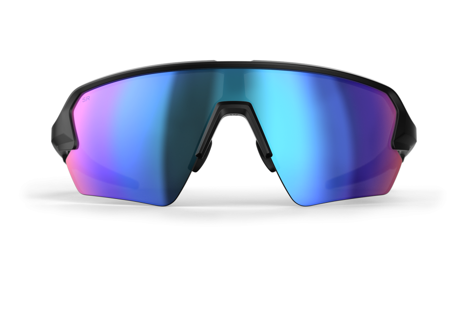 Our best-selling squared off, keyhole frame. Titan features a wide, comfortable lightweight fit while keeping a super premium, durable feel. Matte black TR-90 frame with gloss logos. Interlocking 3 barrel hinges for maximum durability Ultra Clear Polarized ice blue mirrored lenses with amber tint: 100% UV protection /
